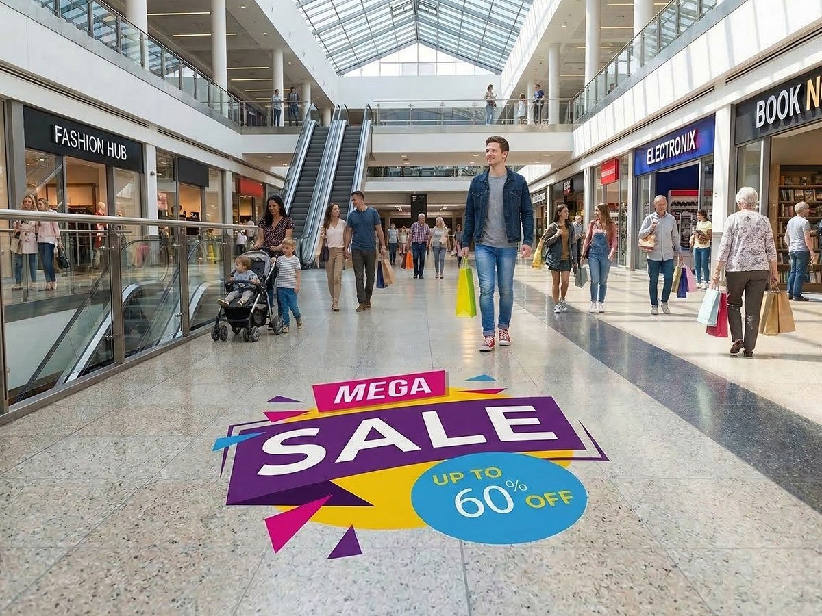 Retail floor promotions transform ordinary store floors into powerful marketing tools. These graphics can highlight seasonal campaigns, new product launches, or featured departments, helping retailers draw attention to specific areas within the store.