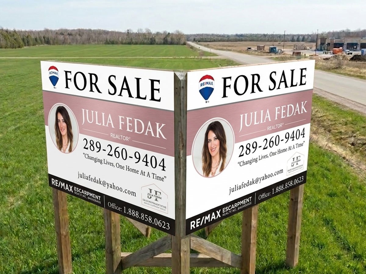 These signs are effective for promoting properties for sale, advertising developments, or guiding visitors around a site. V signs help businesses, developers, and property managers across Hamilton, Ancaster, Burlington, and nearby communities establish a strong presence, communicate key information, and maintain a professional, organized appearance on-site.